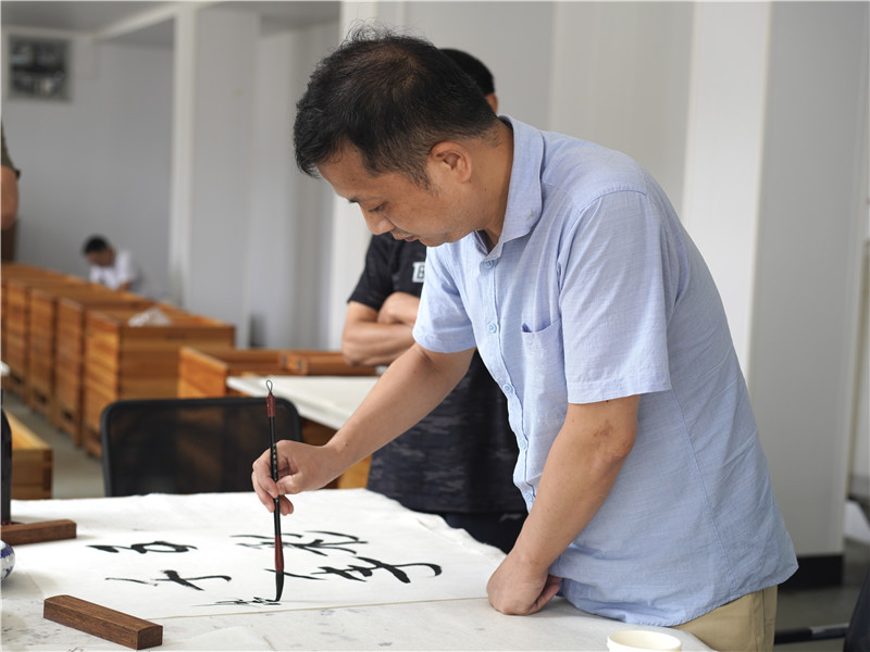 感謝休寧縣書法協(xié)會(huì)主席胡社文陪同安徽省青年書法家協(xié)會(huì)主席王亞洲等藝術(shù)家到公司指導(dǎo),體驗(yàn)徽州楮皮紙傳統(tǒng)技藝。