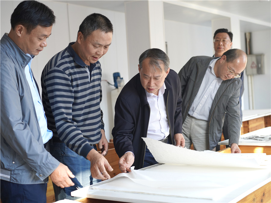 2021年1月26日,休寧縣政協(xié)主席儲(chǔ)曉華來公司調(diào)研徽州楮皮紙制作技藝傳承和發(fā)展情況。